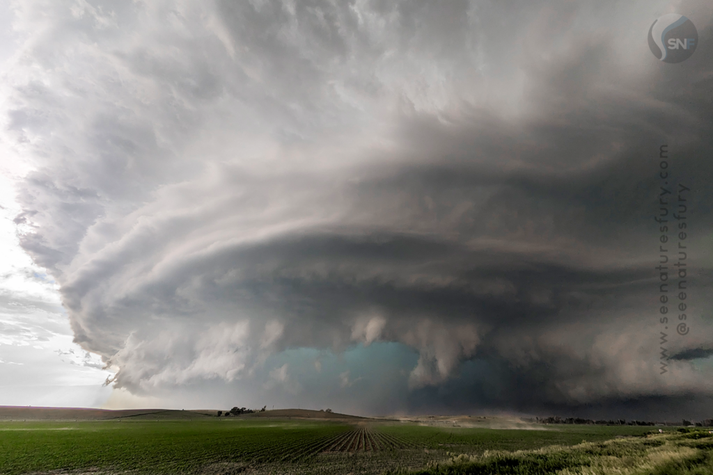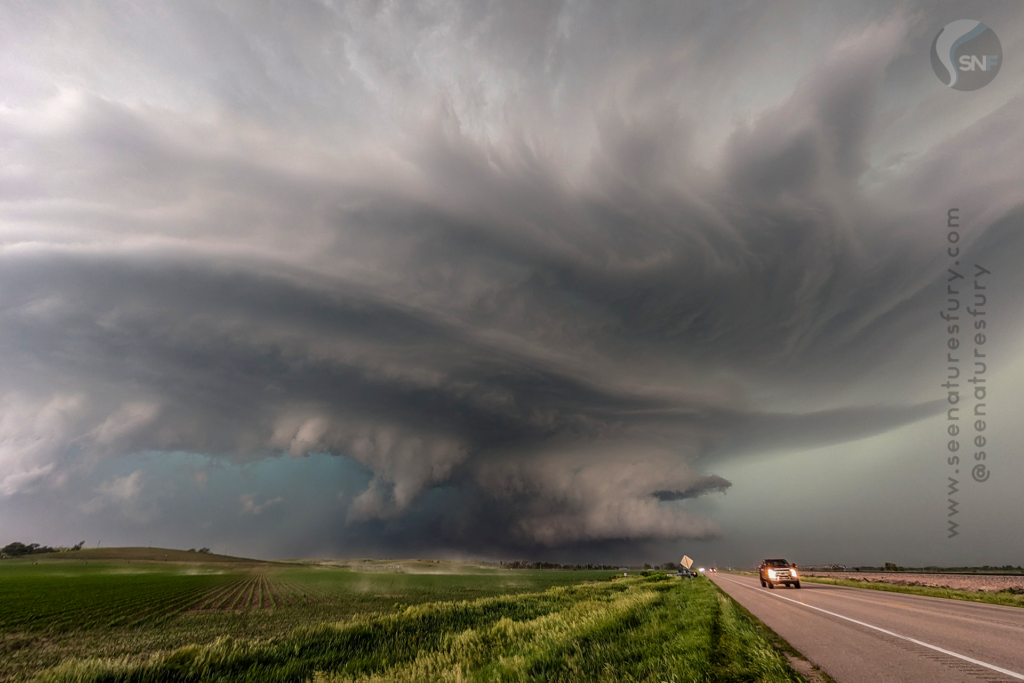 What a day this turned out to be! We followed this supercell from birth near Thedford, Nebraska, and was able to stick with it until it eventually rolled off to our east. At its peak, near Ansley, Nebraska, she was very mean and dropping baseball sized hail! The hail roar from this storm was the best we’ve ever heard, constantly grumbling away overhead. The colours and the structure were just out of this world.